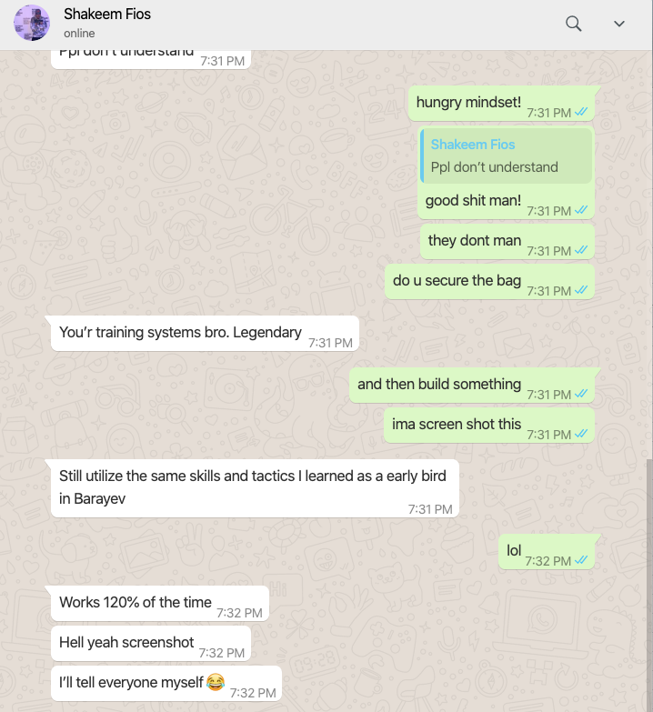 I’ve been building teams and helping entrepreneurs for over 10+ years. I created my first 6 figure income at 24 years old and hit multiple 7 figures by 27. I’ve also duplicated these strategies by building out a sales force with over 150+ sales agents, who worked full time knocking on doors for straight commission. By using the sales strategies I taught them, some of them created their own 6 and 7 figure incomes through this process. Point is- I know how to create results, and I can help you do the same. The proof is in the pudding.